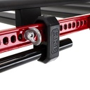 De Premium krikhouder heeft twee scharnierende houders die de krik aan het rek bevestigen en die kunnen worden geopend terwijl de krik erin rust. Er zijn ook voorzieningen voor een hangslot om de krik aan uw voertuig te bevestigen. Net als de Classic kan de Premium krikhouder met de voet omhoog of omlaag worden gemonteerd en is hij in hoogte verstelbaar.