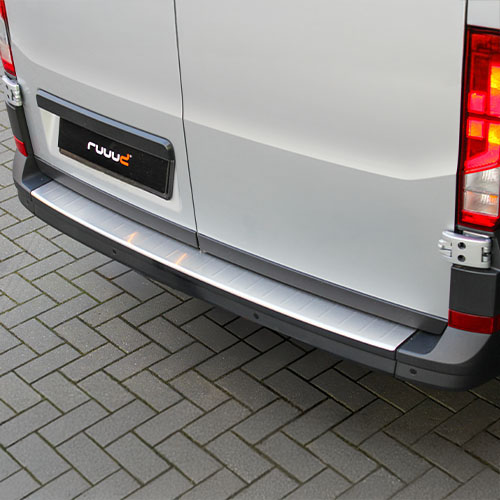 Een bumper beschermer voor de MAN TGE dient zoals de naam omschrijft, als beschermer voor de bovenkant van de achterbumper. Een bumper is een kwetsbaar punt van de bedrijfswagen, zeker wanneer u veel in- en uitstapt via de achterdeuren of klep. De RVS bumperplaat gaat deuken en krassen tegen en biedt grip door het profiel op de plaat.