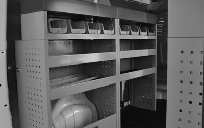 • We bespreken je wensen. Als pakketbezorger vaar je wel bij ruime opbergrekken, terwijl je als elektricien meer hebt aan modulaire inbouwkasten voor al je materialen. Daarom zoeken we in onze uitgebreide database naar een indeling die past bij je beroepsgroep. Deze indeling dient als leidraad voor het eerste ontwerp. Je begrenst bovendien de maximale investering, zodat je een ontwerp ontvangt dat past binnen je budget.
