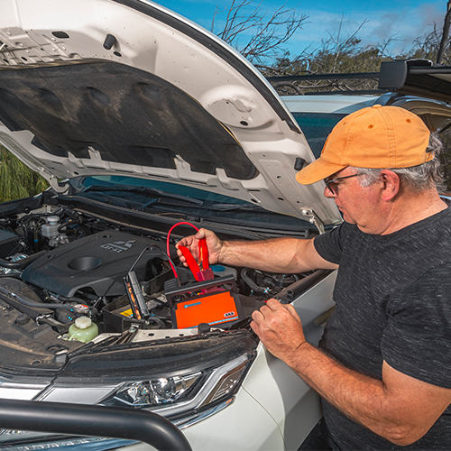 Perfect voor een 4×4, gezinsauto, boot, motorfiets, occasion of zitmaaier, de lithium-aangedreven ARB Jump Starter heeft voldoende vermogen om een 12V-voertuig te starten met een motorinhoud tot 5L V8 diesel of 6L benzine.