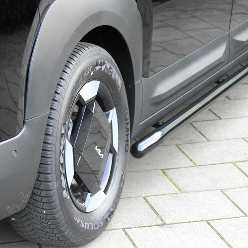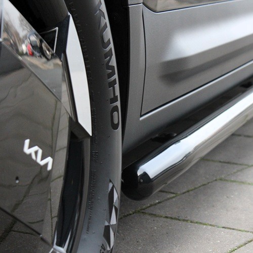 De zwarte RVS sidebars voor de KIA PV5 zijn vervaardigd uit hoogwaardig 304 roestvast staal en afgewerkt met een duurzame zijdeglans zwarte coating. Wat onze sidebars onderscheidt van de concurrentie, is de combinatie van stevigheid, TÜV/ABE-keurmerk en perfecte afwerking. Dankzij de wanddikte van 2 mm zijn onze sidebars maar liefst 72,27% sterker dan de gebruikelijke 1,5 mm varianten op de markt, dit is getest en bevestigd op de proefbank. De gebogen en dichtgelaste uiteinden zorgen bovendien voor een strakke, hoogwaardige afwerking die perfect past bij jouw KIA PV5.